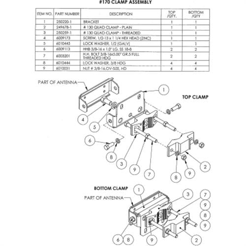 - El ensamble de abrazadera CLAMP-170 es un juego sencillo en dos piezas por antena como para la SP304V-SF1P70LDF(DXX).