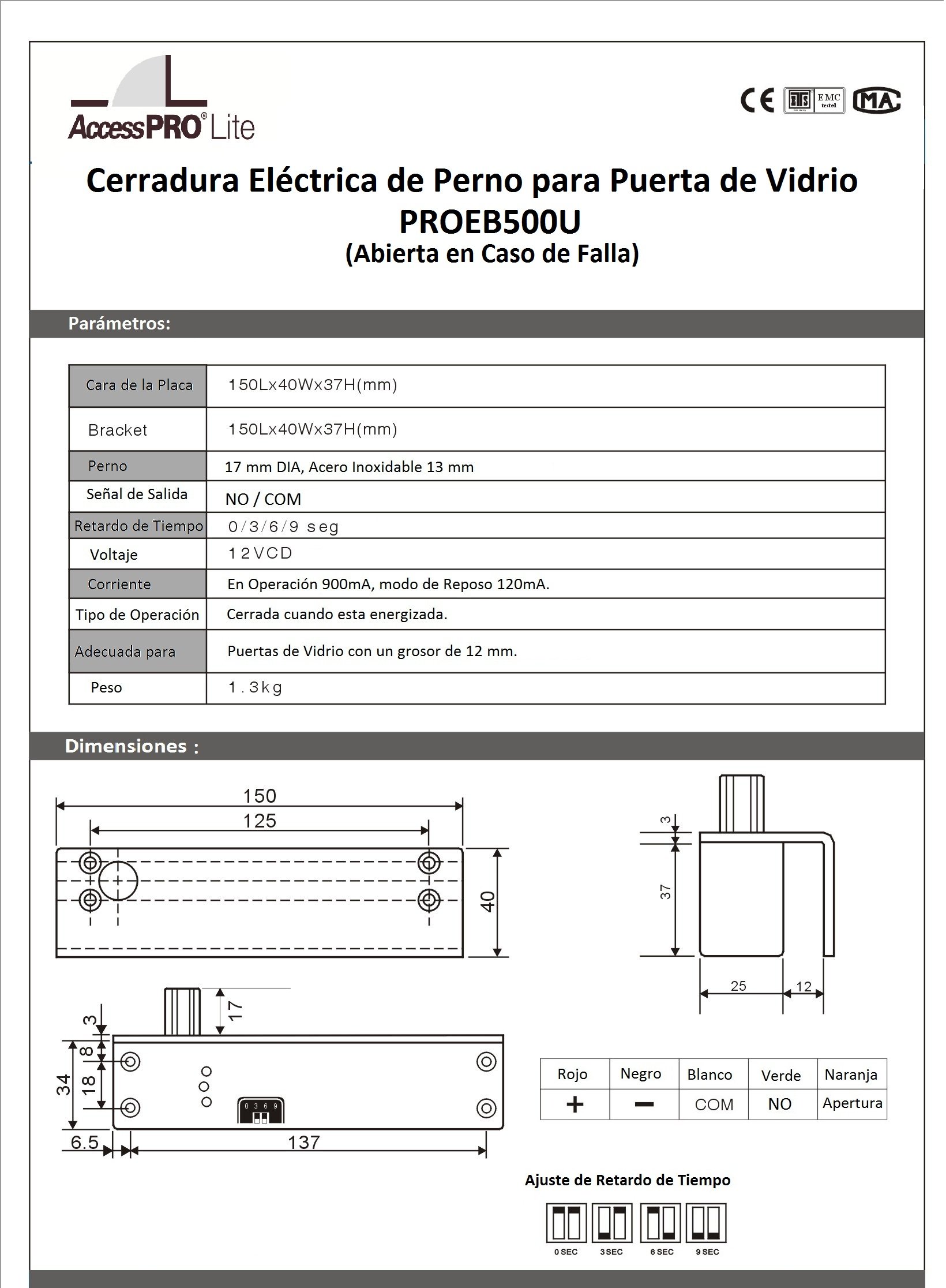 • Cuenta con sensor de puerta.