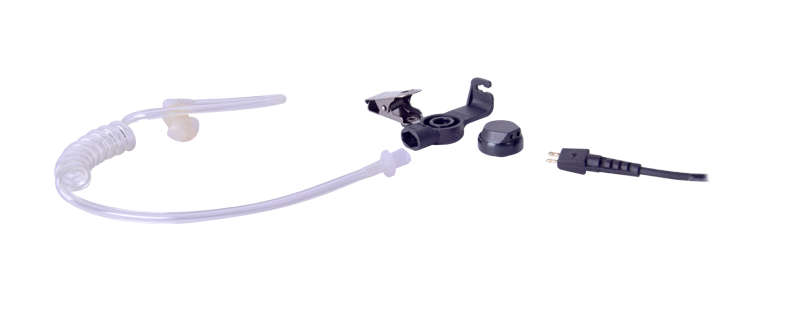 Kit de 2 hilos para vigilancia con audífono de tubo acústico y micrófono/PTT interconstruido.