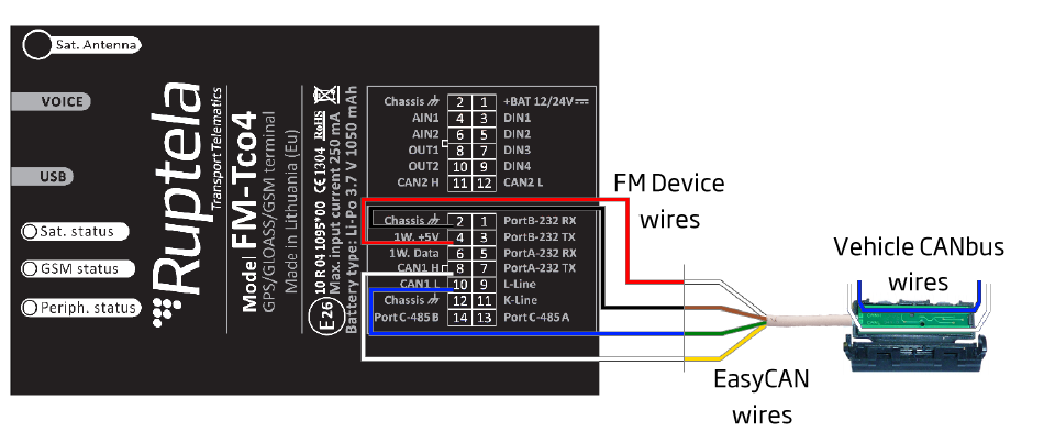 EasyCAN se utiliza para tener una conexión rápida y segura al puerto CANBUS de los vehículos. EASYCAN permite conectar equipos de rastreo satelital directamente a la computadora del vehículo sin tener que cortar cables y sin violar la garantía del vehículo. EasyCAN puede leer datos de protocolo FMS(J1939)