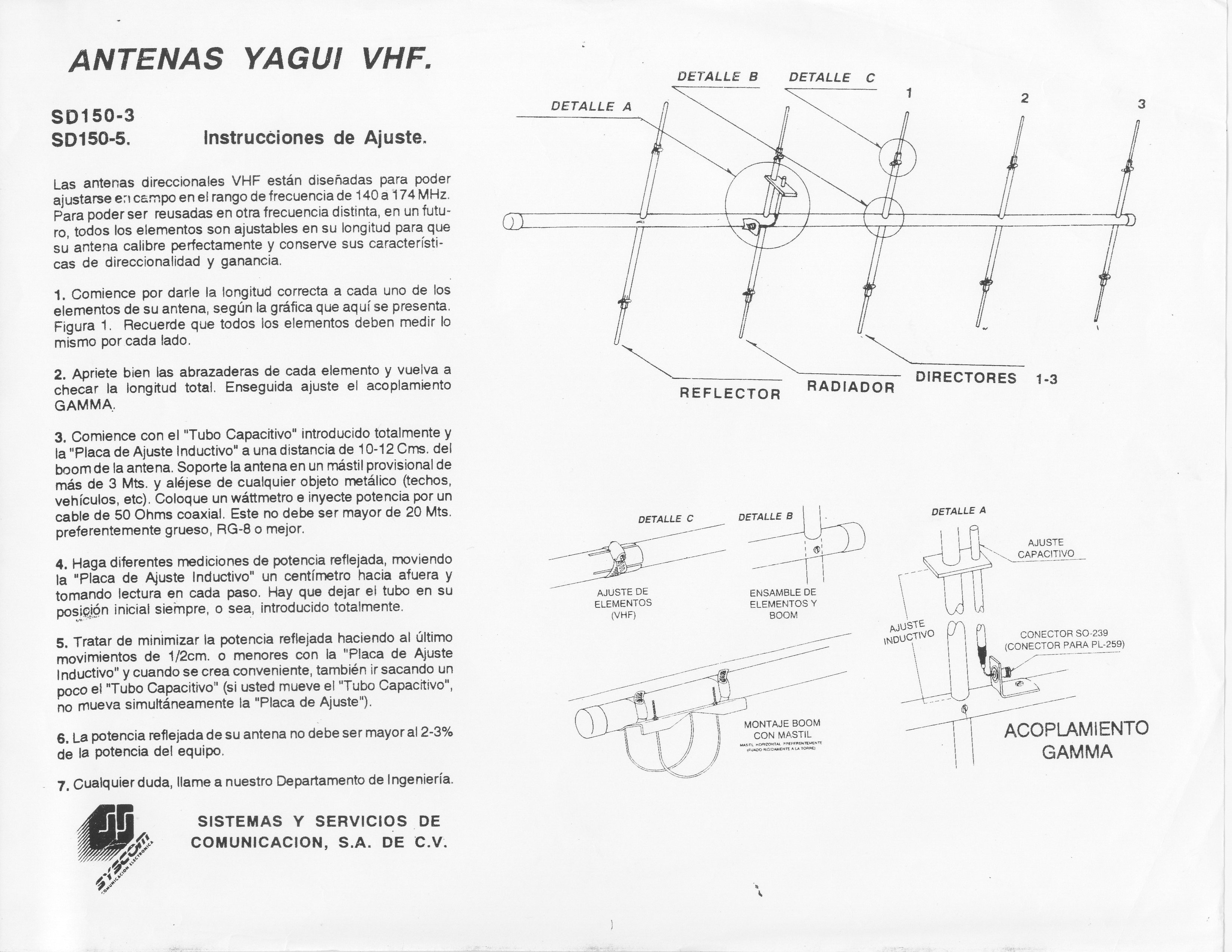 Antena Base VHF, Direccionales, Rango de Frecuencia 136 - 174 MHz.
